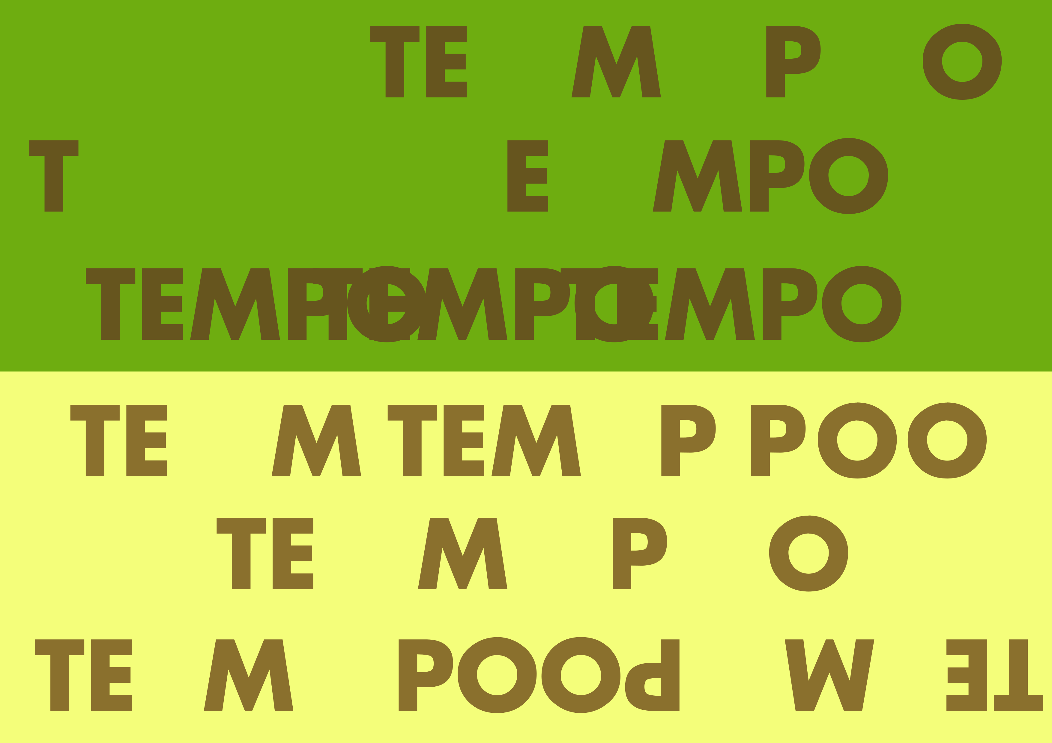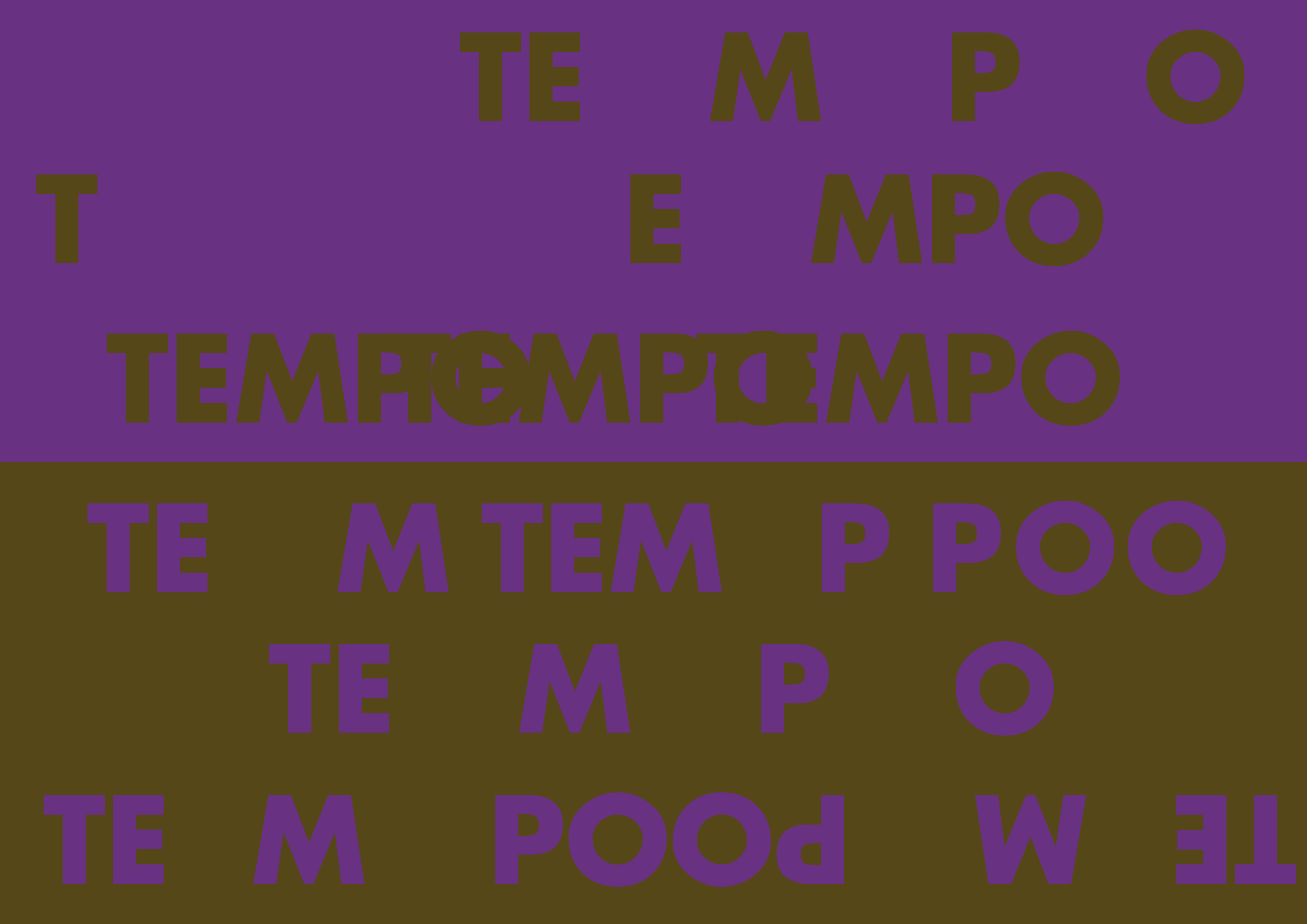 O poema Do Tempo segue essa linha de experimento, onde construo uma montagem com os signos verbais, visuais e sonoros utilizando o tempo como variável. Inicialmente utilizando o conceito de intensidade e luminosidade do signo visual, amplia-se o tempo da intertextualidade entre enunciador e receptor, já que a utilização de apenas duas cores cria uma montagem poética que parece utilizar-se de quatro tons diferentes, modificando a forma como a onda de cor percorre o espaço. Em seguida, na imagem abaixo, as cores diferentes dos signos verbais dão a ilusão de todas as letras estarem com a mesma cor, diminuindo a relação do tempo com as características do signo visual. A montagem dos signos verbais também amplia e contrai o tempo da interação gênero textual - leitor.
